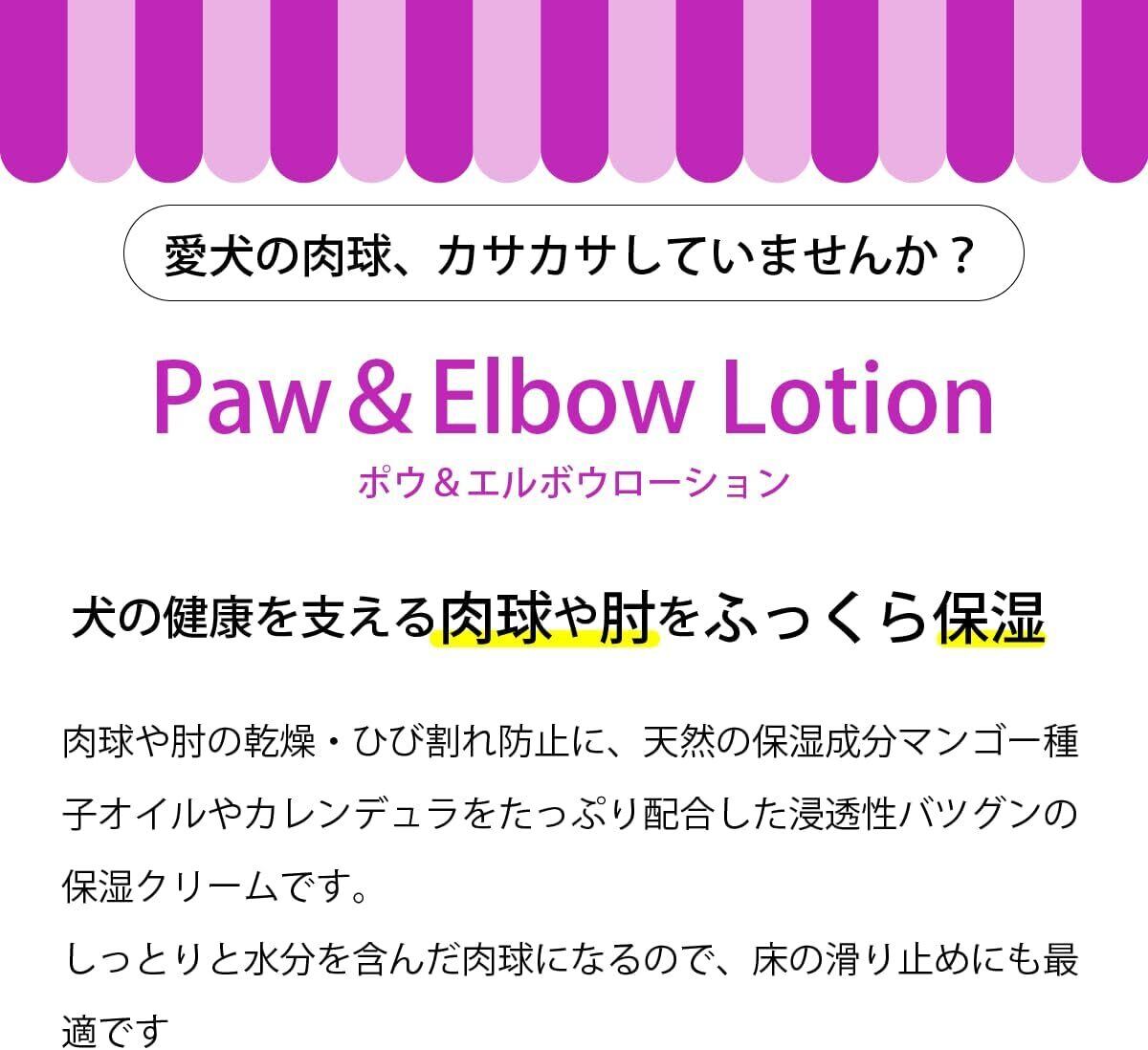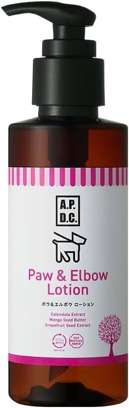そんな肉球や肘を保湿・保水し、コンディションを整え、快適に保つためのローションには、天然の保湿成分マンゴー種子オイルやカレンデュラをたっぷり配合しました。浸透性が高く、つけた後はしっとりと水分を含んだ肉球になるので、床の滑り止めにも最適です。