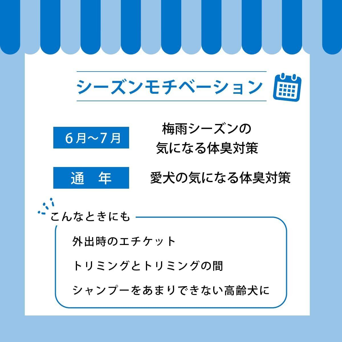 梅雨や湿気の多い季節や、トリミングとトリミングの間に、シャンプーをあまりできない高齢犬に。家の中はもちろん、外出時にもオススメです。