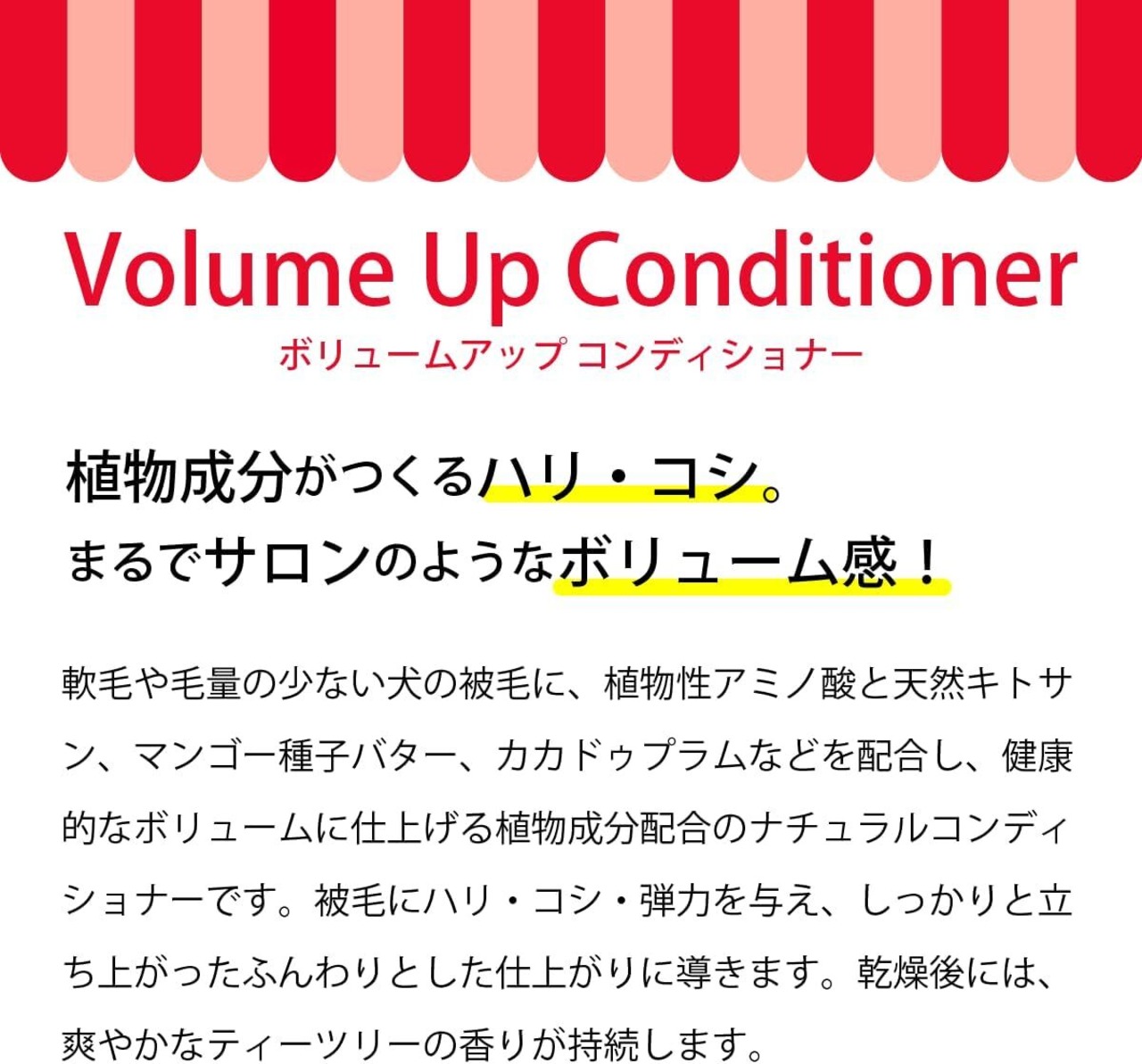 ・植物性アミノ酸と天然キトサンがダメージを補修し、被毛のハリ・コシを高めます