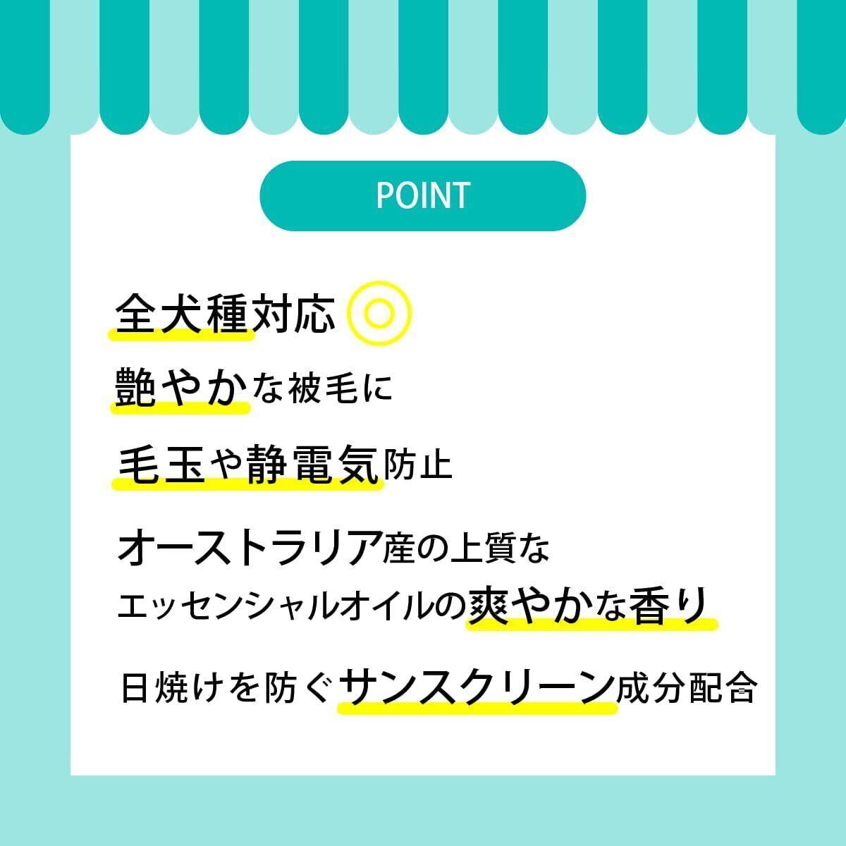 ・サンスクリーン成分配合で、日焼けによる被毛のダメージを防ぎます